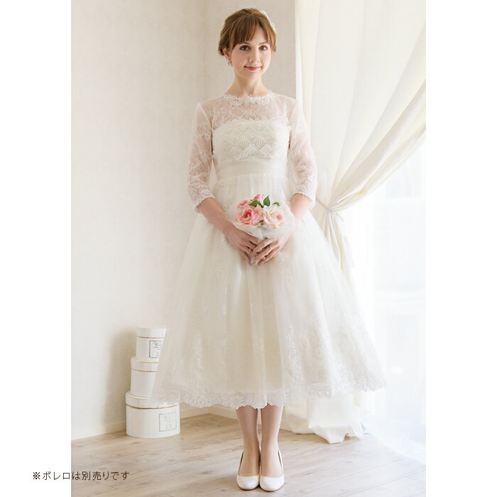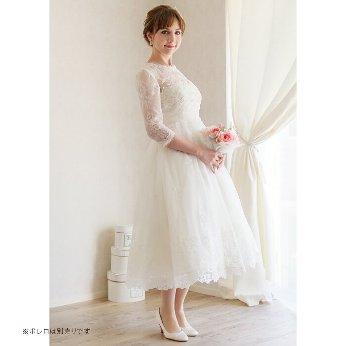 【ロマンティックミモレ丈】【アンティーク風レース】ウエディングドレス ミモレ 二次会 花嫁ドレス 二次会ドレス ミモレ ミモレ丈 ウェディングミディアム アンクル丈 ミモレ丈 ウェディングドレス