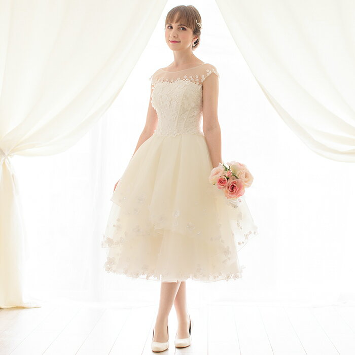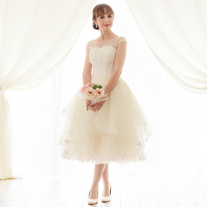 【大人気のミモレ丈ドレス】【主役ロマンティックドレス】ウエディングドレス ミモレ 二次会 花嫁ドレス 二次会ドレス ミモレ ミモレ丈 ウェディングミディアム アンクル丈 ミモレ丈 ウェディングドレス